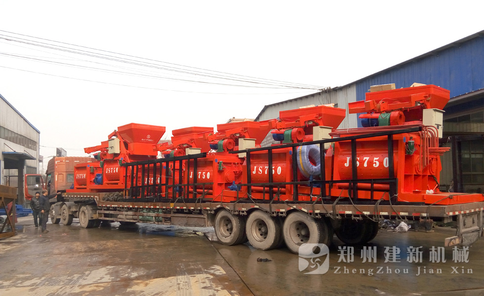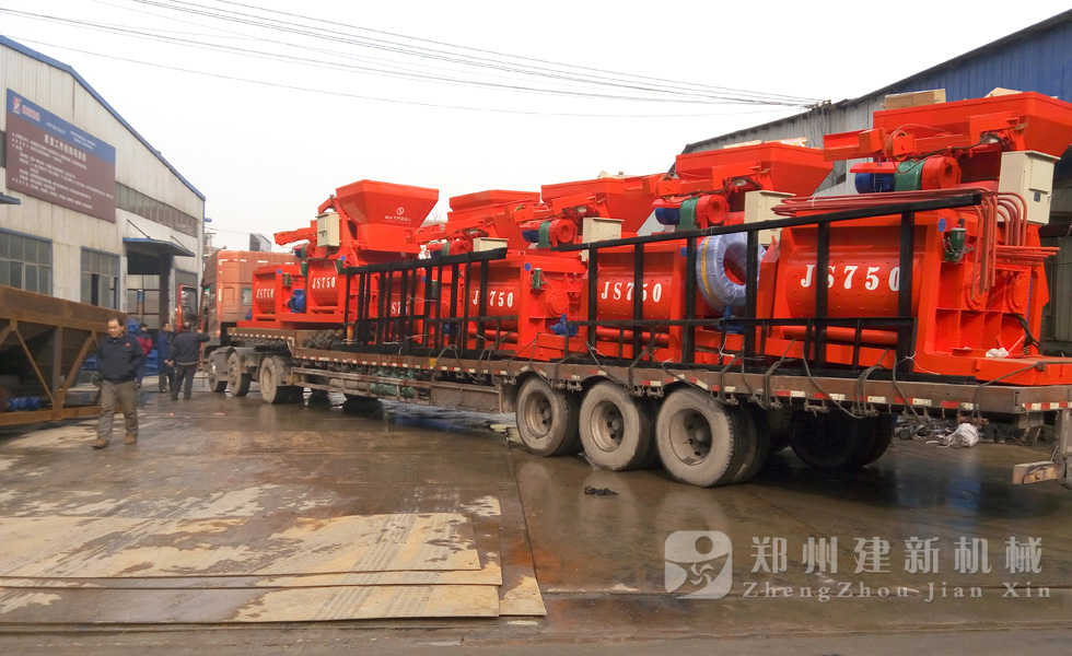 2015年12月1日,6臺JS750強(qiáng)制式混凝土攪拌機(jī)在鄭州建新機(jī)械廠家完成裝車,發(fā)往河南周口。